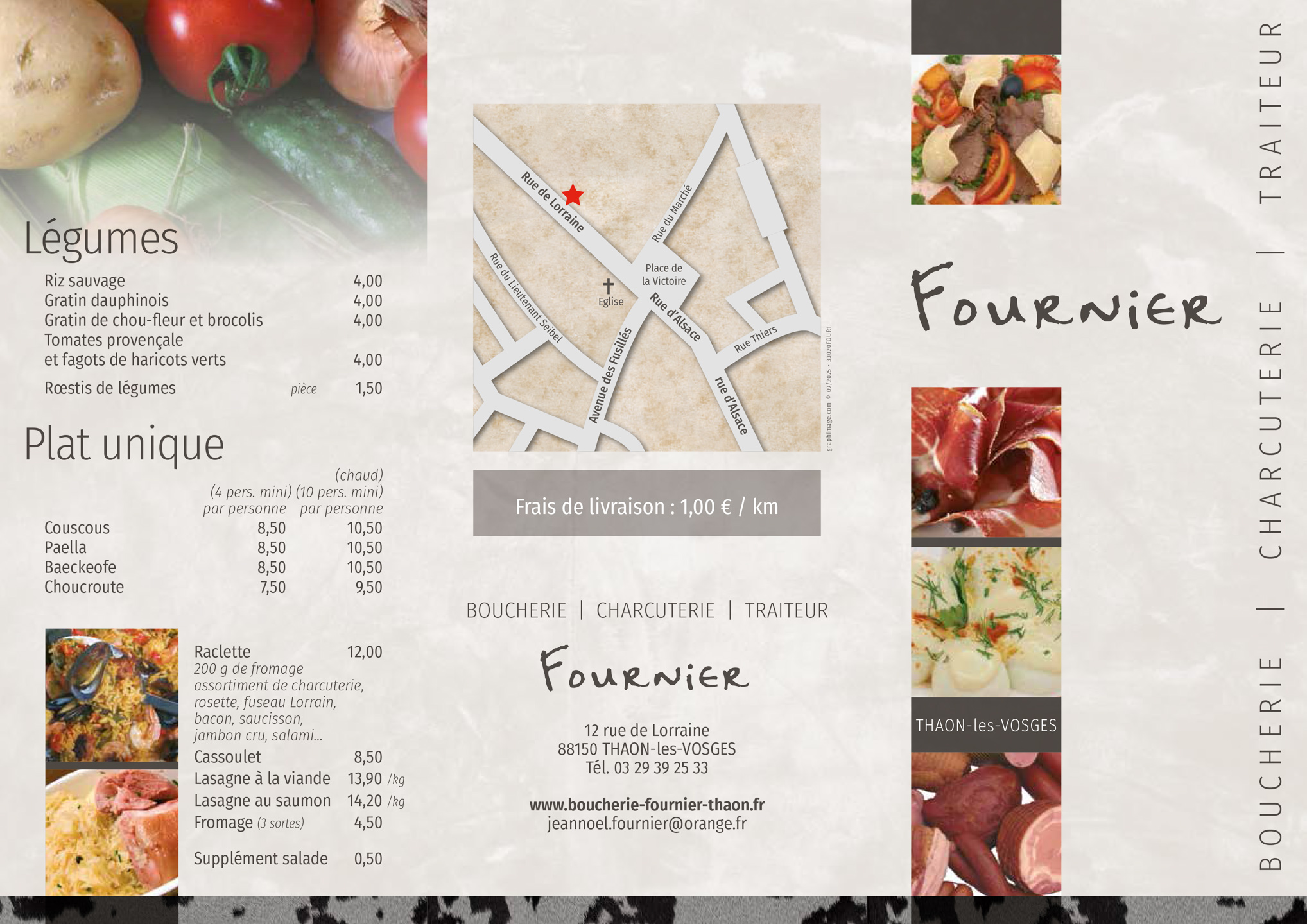 Idéals si vous manquez de temps ou simplement pour vous faire plaisir, la Boucherie Fournier propose chaque jour des plats à réchauffer ou prêts à déguster adaptés à la saison : salades fraîches, gratins, lasagnes, choucroute garnie, viandes cuisinées ...